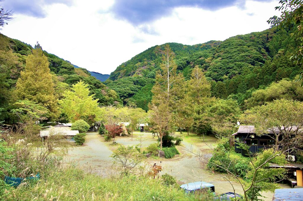 伊豆の山と川に囲まれた海に近いキャンプ場